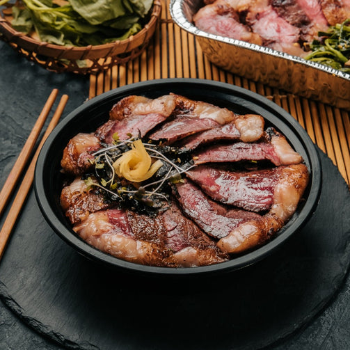 Premium Japanese Wagyu Sirloin. House-made Gari. Wasabi Salt. Wagyu Steak Sasanishiki Chahan.