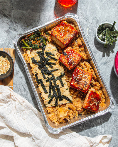 Salmon Fillet. Nori Tamago. Dashi Mirin Glaze. House-made Gari. Shiitake Mushroom Sasanishiki Chahan. Good for 3-4 pax.